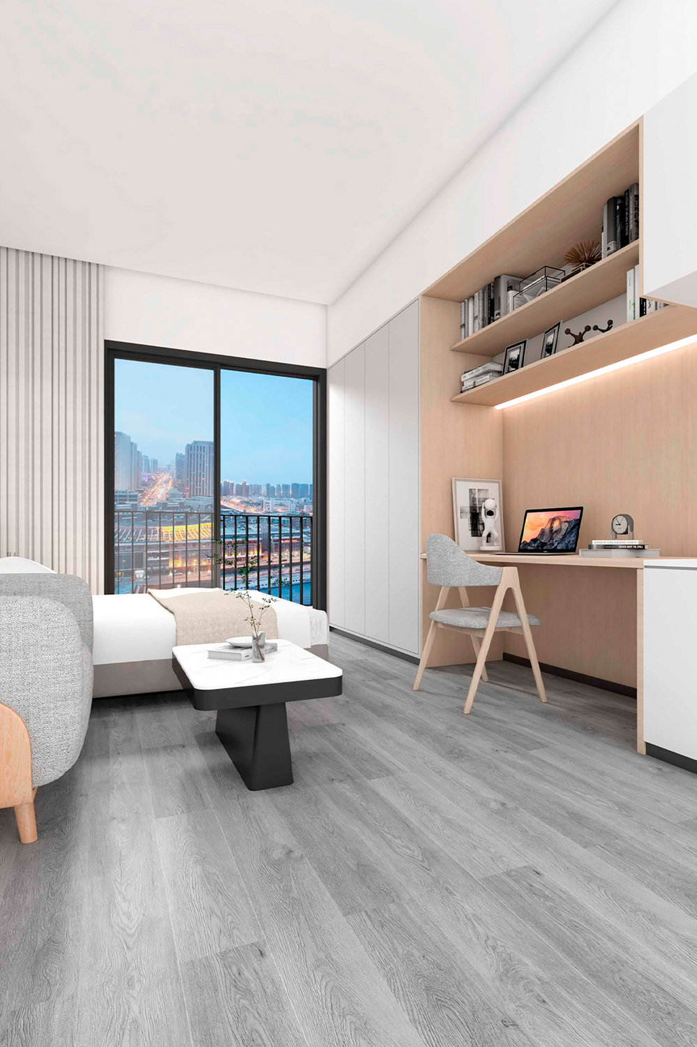 Los suelos SPC es la nueva generación de pavimentos desarrollados a través de la combinación de un 65% de minerales, 29% de PVC y un 6% de aditivos, logrando así un núcleo altamente rígido y estable.